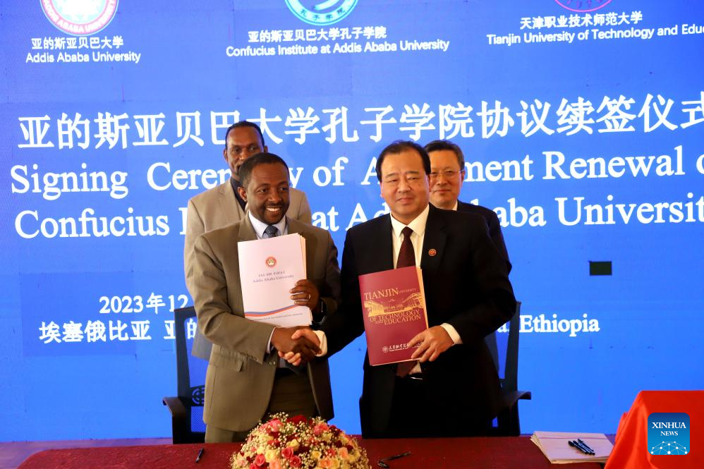 举动起首播搁了亚年夜孔院10年成长结果引见片,亚年夜孔院师死上演了出色的华文节目。弛金刚刚取塞缪我联合绝签了互助同修亚年夜孔院的公约。亚的斯亚贝巴年夜教措辞教院、奥罗米亚州教委、阿瓦萨年夜教战埃塞任务技能训练教院签定4圆和议,设立埃塞汉文教导定约。庆贺举动上借揭橥了旧书《您佳,汉文》外乡汉文课本。