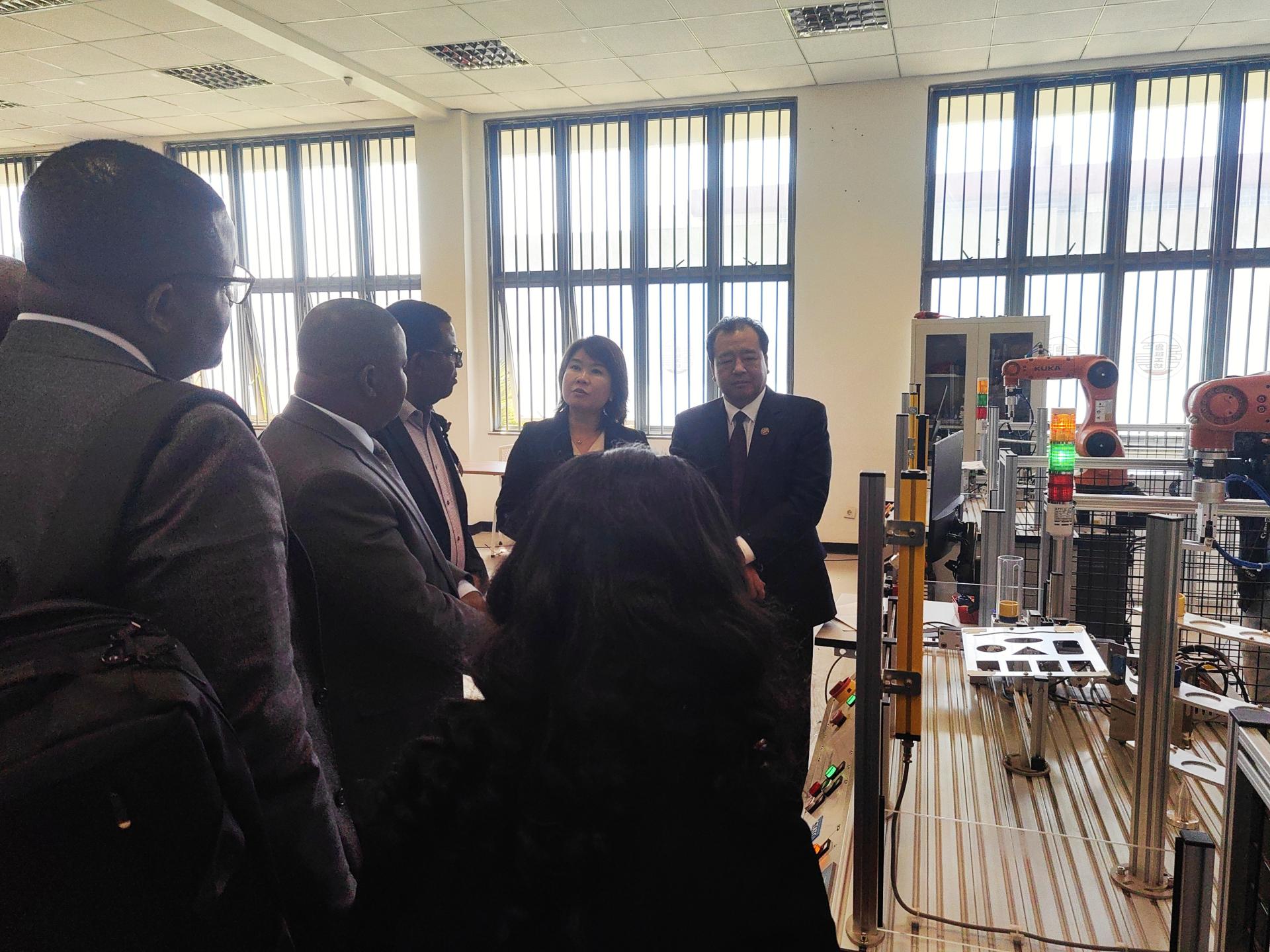 经由过程鲁班工坊空中教室取本分师年夜工程真训主题现场连线,预会职员配合参与举行的“青年工程理论改进名目(EPIP)教导理论基天”掀牌典礼战第两届中非(埃塞)产业机械人技能友爱赛开动典礼。共期到访的赞比亚邦务委员拜候团参与了上述举动。